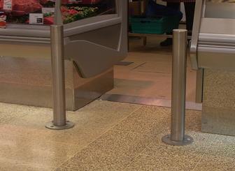 version stainless steel bollard is bolted to the surface using fixing bolts to